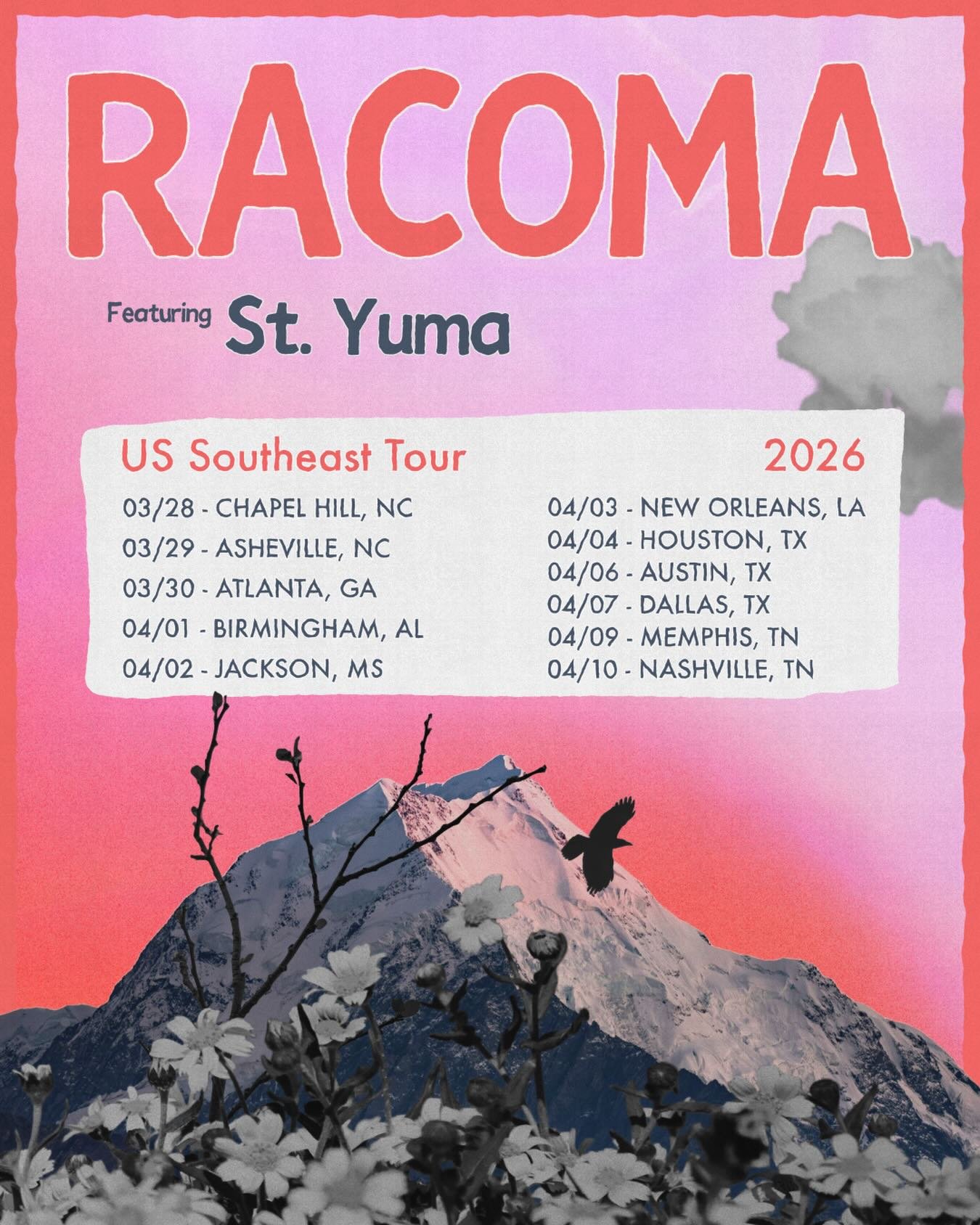 For their most recent album, Racoma continues to keep things fresh with something a bit different. The band partnered with fly-fishing bassist Garrett Gue to record live takes directly to analog tape at Sage Arts Recording Studio, capturing a lively and melodic approach rich with spontaneity and unafraid of imperfections. In Vine is playful and loose, capturing wistful joy in a way that feels both intimate and raw.